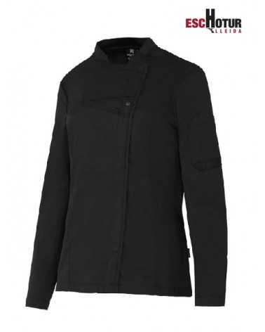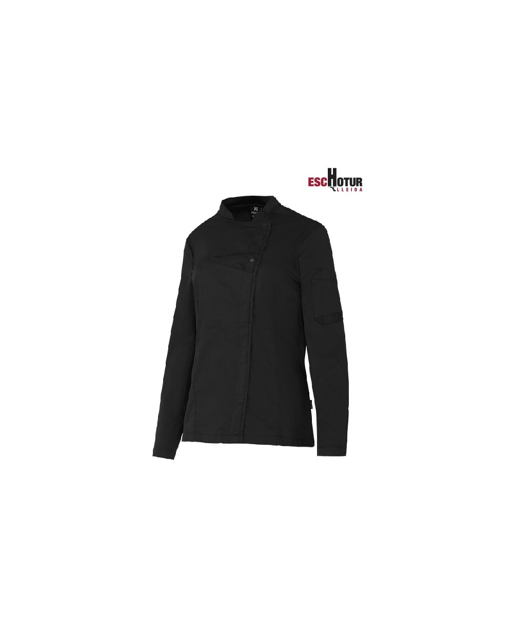 CHAQUETA COCINA CHICA NEGRA CON LOGO ESCHOTUR